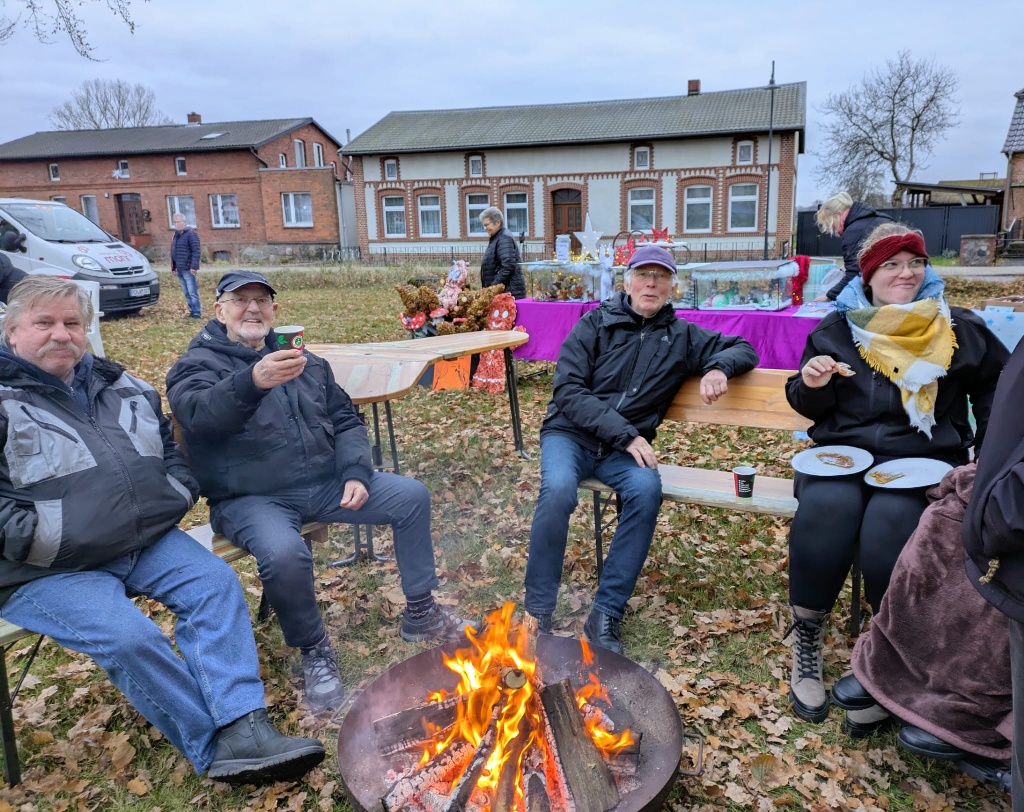 Lange zuvor haben sie dafür fleißig gebastelt. Das Leuchten in den Augen der Kinder, der Zuspruch an unseren warmen Getränken und den Süßigkeiten, die es als Belohnung für den selbstgebastelten Schmuck gab, sagte uns, dass unsere ehrenamtliche Arbeit sich lohnt. Wir freuten uns über das schöne Weihnachtslied „O Tannenbaum“, das aus Kindermund wirklich toll klingt. Kinder waren und sind auch heute die Zukunft für uns alle. Großer Dank geht unsererseits an die Erzieher des Kindergartens „Sonnenschein“ in Ziegendorf: Ihr macht eine super Arbeit!